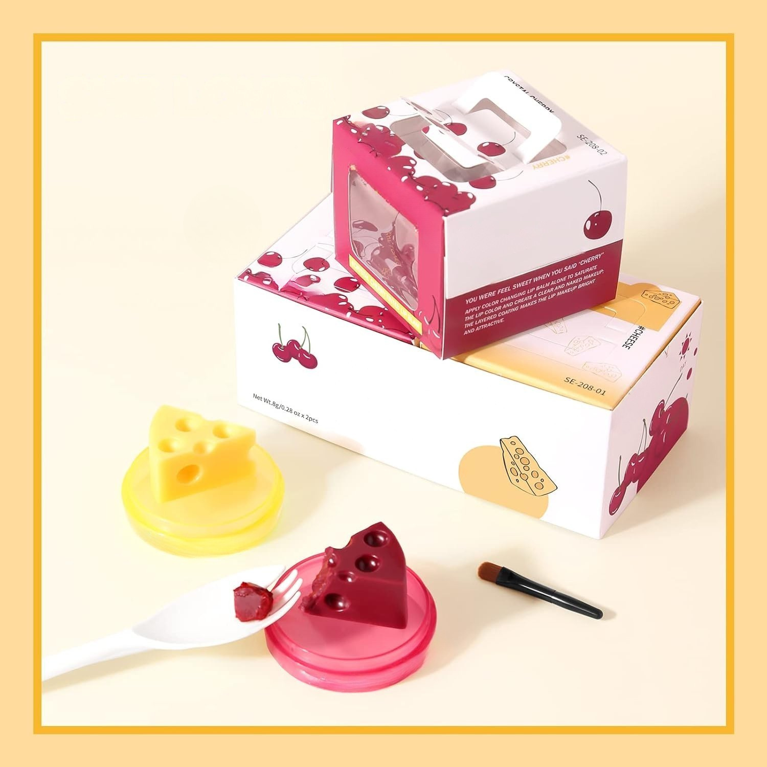 Adorable cheese packaging with lip brush